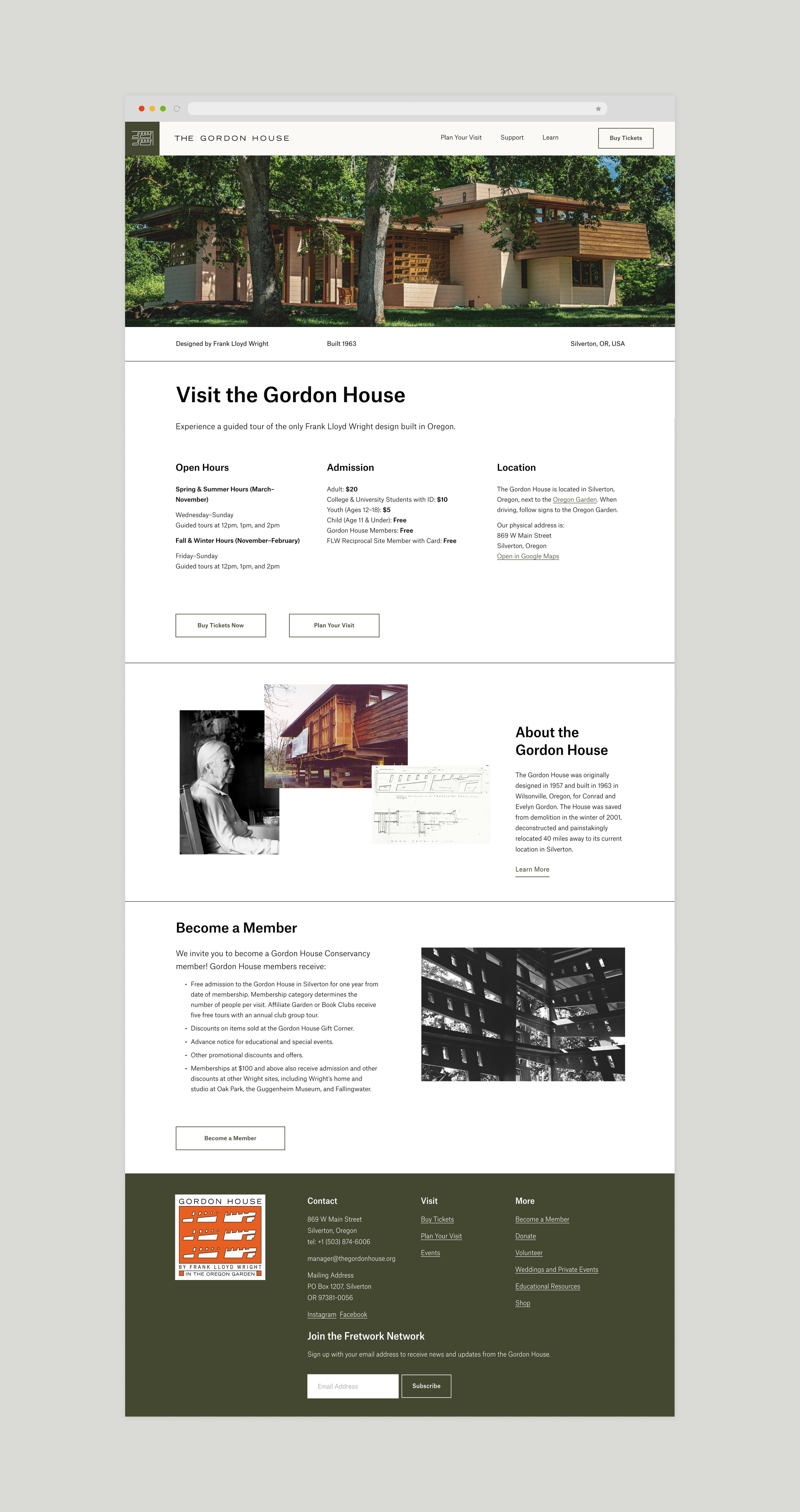 As a designer for Sheepscot Creative, I worked with the Gordon House, the only Frank Lloyd Wright-designed property in Oregon, to redesign their website.